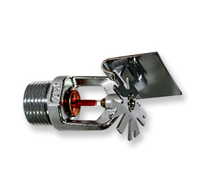 This sprinkler produces a hemispherical water distribution pattern below the deflector