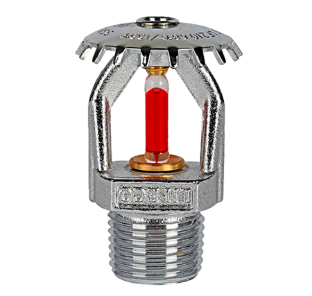 This sprinkler produces a hemispherical water distribution pattern below the deflector